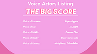 - November 08, 2020 by Div#gamedev, #femdom, #game, #datingsim, #visualnovel, #adultgame, #adult, #domination, #humiliation, #voiceactingHey everyone just wrapped up the final voice actor and wanted to announce the official The Big Score Voice Cast. Voice credits: Lauren: Aipacalypse Ivy: MLWDY Nikki: Creme Chu Becky: Stareyedweirdo E... Continue reading